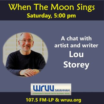 on When The Moon Sings: Music from Bruce Hornsby and Jeff Oster. Then, P.T. Bridgeport chats with Lou Storey, a writer who has published in The New Yorker magazine (among many others) and a visual artist, with several solo shows on the East Coast, and a group show upcoming here next month. Join them at 5 p.m.