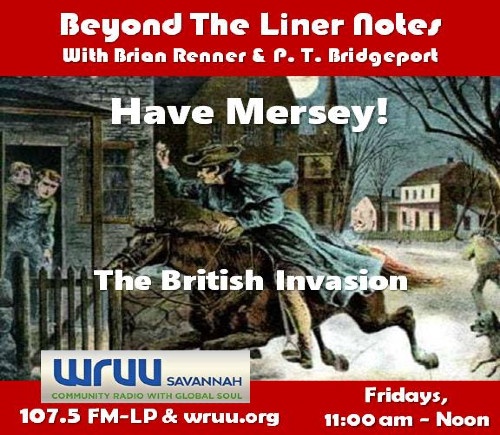 Fri. 11 am – Beyond The Liner Notes: The British invasion of America in the mid-1960’s. Join P. T. and Leigh for a look at Merseybeat and music from the invasion. 05/15 /2020.