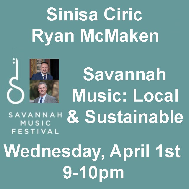 April 1 at 9 p.m. on Savannah Music Local and Sustainable: Sinisa Ciric and Ryan McMaken talk about the 2026 Savannah Music Festival.