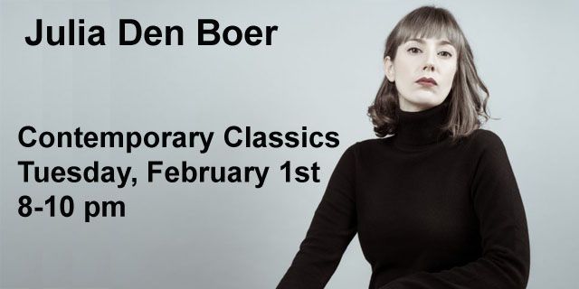 Tue. 8 pm – on “Contemporary Classics,” Dave is joined by pianist Julia Den Boer to talk about her recent album “Kermes”. 02/01/2022.