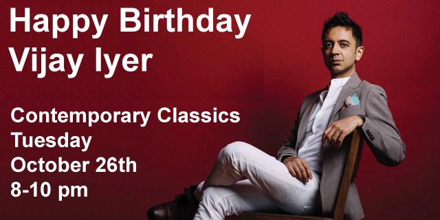 Tue. 8 pm – “Contemporary Classics” a celebration of Vijay Iyer’s birthday with a celebration of his contributions to contemporary concert music. 10/26/2021.