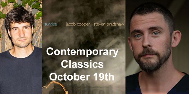 Tue. 8 pm – “Contemporary Classics” will feature my conversation with composer Jacob Cooper and vocalist Steven Bradshaw about their new release “Sunrise”. 10/19/2021.