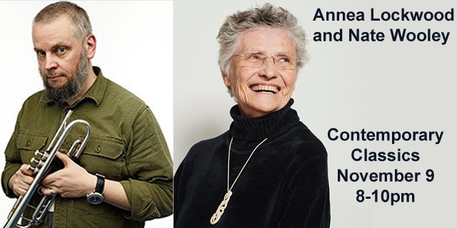 Tue. 8 pm – Composer Annea Lockwood and trumpeter Nate Wooley to celebrate their album “Becoming Air/Into the Vanishing Point”. 11/09/2021.