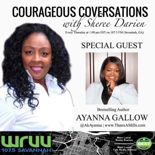 Thu. 1 pm EDT- This week on Courageous Conversations with Sheree, Author Ayanna Gallow combines God, the Bible and Hip Hop! This is going to be fun!!! Join us! Thanks a million!!!Her book: God & Hip Hop, A 21 Day Biblical Devotional was inspired by Hip Hop music. 10/03/2019.