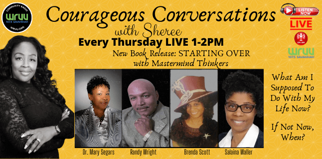 Thu. 1 pm – Courageous Conversations with Sheree welcomes returning guest Dr. Mary Segars along with Mastermind Thinkers Brenda Scott, Randy Wright and Salaina Waller. 03/25/2021.
