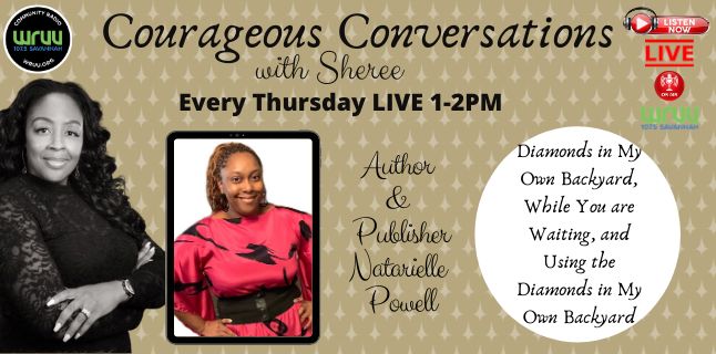 Thu. 1 pm – Courageous Conversations with Sheree welcomes Author and Publisher Natarielle Powell!!! “She who leaves a trail of glitter is never forgotten” author unknown. 11/19/2020.