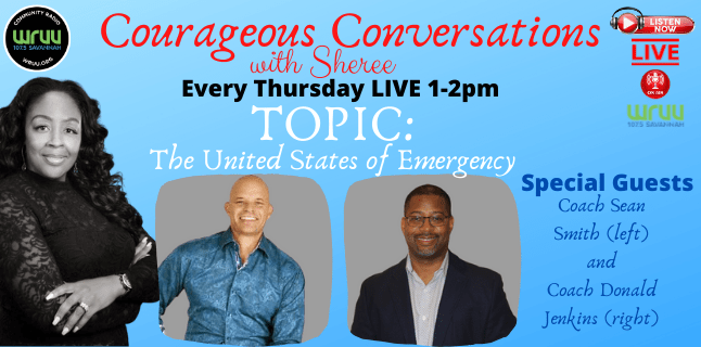 Thu. 1 pm Courageous Conversations with Sheree welcomes Coach Sean Smith and Coach Donald Jenkins. The truth is we are ALL in a collective state of emergency. 06/11/2020.
