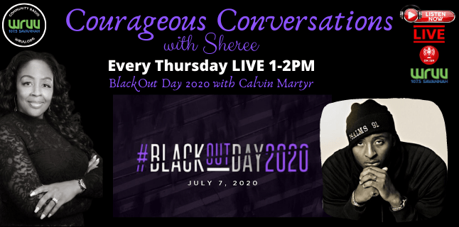 Thu. 1 pm – On Courageous Conversations with Sheree, “BlackOut Day 2020” Tune in to hear exactly what it is and what it is not.07/09/2020.