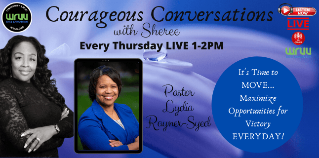 Thu. 1 pm – CourageousĀ Conversations with Sheree welcomes Pastor and Business Owner Lydia Rayner-Syed. 07/16/2020.