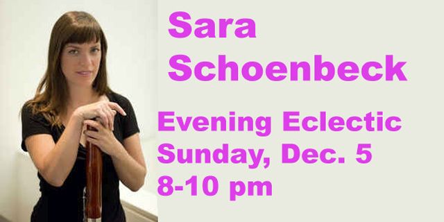 Sun. 8 pm – on “Evening Eclectic” Dave is joined by improvisational bassoonist Sara Schoenbeck to celebrate the release of her eponymous album Sara Schoenbeck. 12/05/2021.