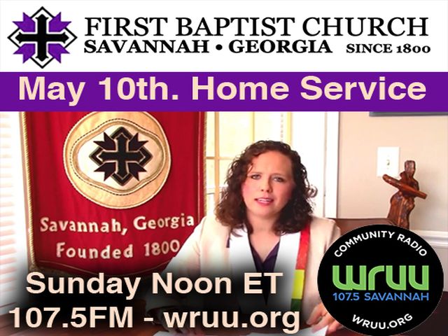 Sun. 12 pm – First Baptist Church of Savannah brings you our May 10th. service from our Co-Pastor’s home. The church remains closed, but you can connect with us via our website. 05/24/2020.