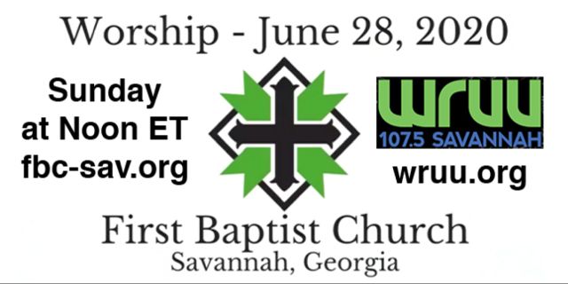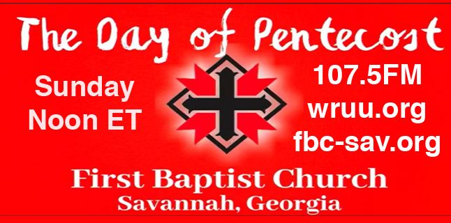 Sun. at Noon ET Celebrate Pentecost Sunday from May 31 at First Baptist Church of Savannah. 06/14/2020.
