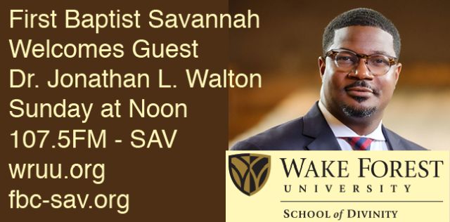 Sun. 12 pm – FBC Savannah Welcomes guest preacher Dr. Jonathan L. Walton, Dean of Wake Forest University School of Divinity, Presidential Chair in Religion and Society, and Dean of Wait Chapel. 08/09/2020.