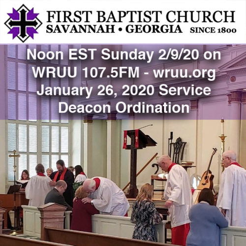 Sun. 12 pm – The Inclusive First Baptist Church of Savannah welcomes you to tune in at Noon EST Sunday on WRUU 107.5. or wruu.org worldwide. When we feature our January 26, 2020 Service where we ordained new Deacons. 02/09/2020.