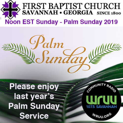 Sun.12 pm – It is Palm Sunday the beginning of Holy Week for the Christian church. Due to the Covid 19 situation, The First Baptist Church of Savannah, brings you the Palm Sunday service from last year. 04/05/2020.