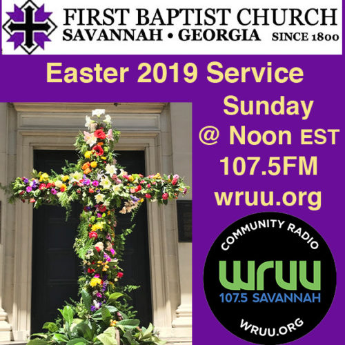 Sun. 12 pm – Celebrate Easter Sunday, 4/12/2020 at Noon on WRUU 107.5FM and live globally on wruu.org. First Baptist Church of Savannah will bring you our Easter service from last year. In the words of our Easter hymn “Christ the Lord is Risen Today” by Charles Wesley “Love’s redeeming work is done, Alleluia! Fought the fight, the battle won, Alleluia! Death in vain forbids him rise, Alleluia! Christ has opened paradise, Alleluia!” For more information about the Inclusive First Baptist Church of Savannah visit our new website https://fbc-sav.org. 04/12/2020.