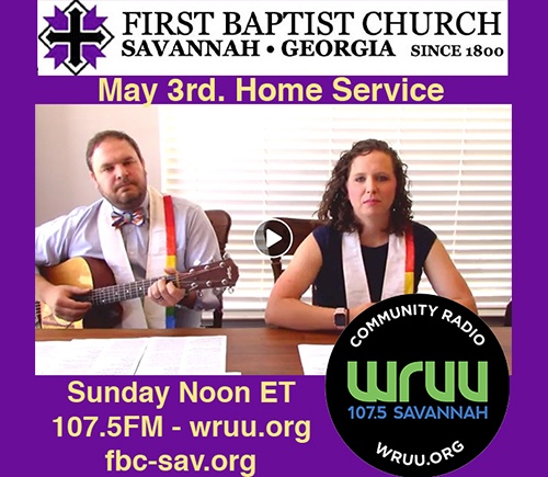 Sun. 12 pm, join us for the 3/15/2020 virtual service from the Inclusive First Baptist Church of Savannah, GA. Due to COVID-19 the church has taken the unprecedented action of closing all buildings to our member, visitors, and to the public. 03/29/2020.
