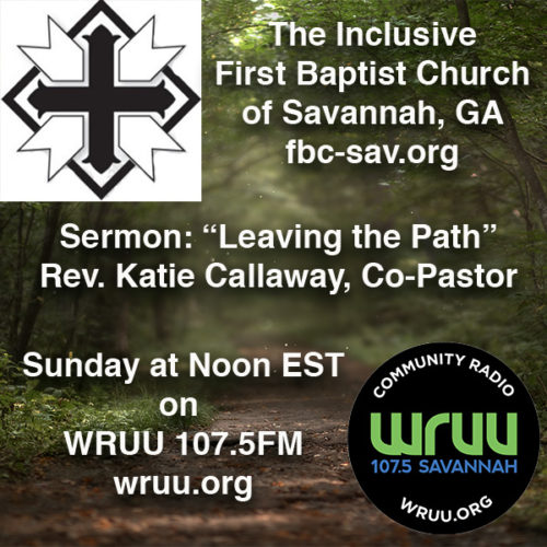 Sun. 12 pm – Join us for our Sunday January 5, 2020 worship service from The Inclusive First Baptist Church of Savannah. Co-Pastor, Rev. Katie Callaway encourages us with her sermon “Leaving the Path. “ At First Baptist Church of Savannah, ALL are Welcome. 01/19/2020.