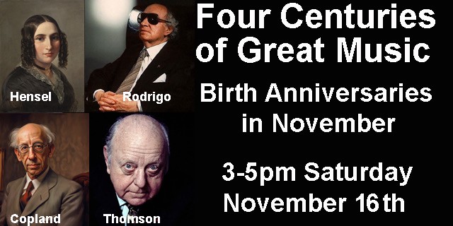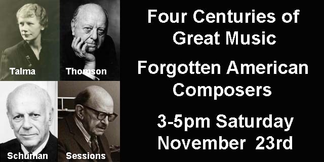 Sat. 3 pm. Music of Forgotten American Composers Show #2 on “Four Centuries of Great Music” 10-19-2024
