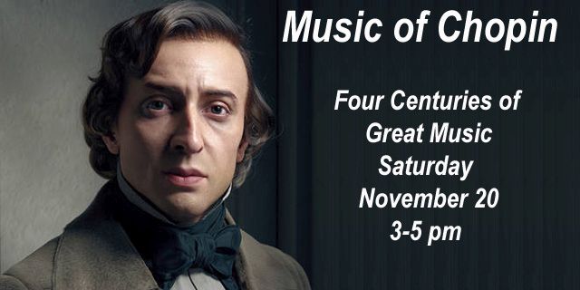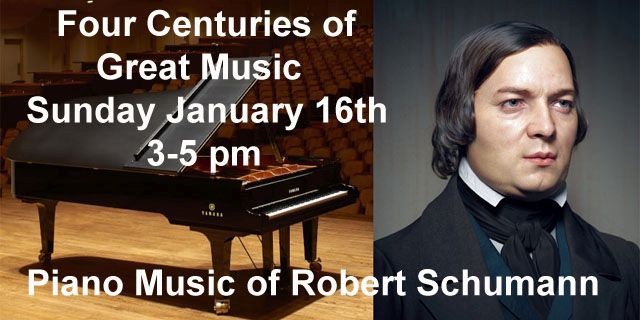 Sun. 3 pm – on Four Centuries of Great Music features the piano music of Robert Schumann. 01/16/2022.