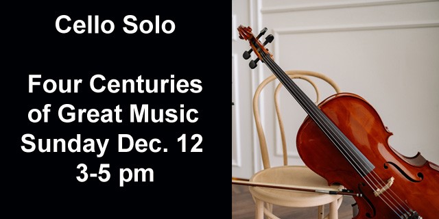 Sun. 3 pm – on Four Centuries of Great Music features music written for solo cello though the centuries. 12/12/2021.