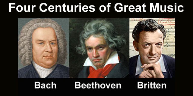 Sun. 3 pm – Four Centuries of Great Music features the 3 B’s: Bach, Beethoven and Britten. 01/03/2022.