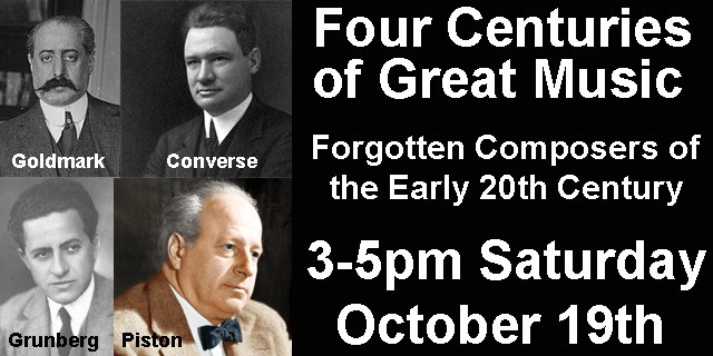 Sat. 3 pm. Music of Forgotten American Composers Show #2 on “Four Centuries of Great Music” 10-19-2024
