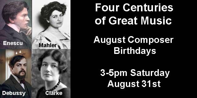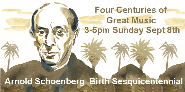 Sat. 3 pm. Sesquicentennial Birth of Composer Arnold Schoenberg on “Four Centuries of Great Music” 09-14-2024