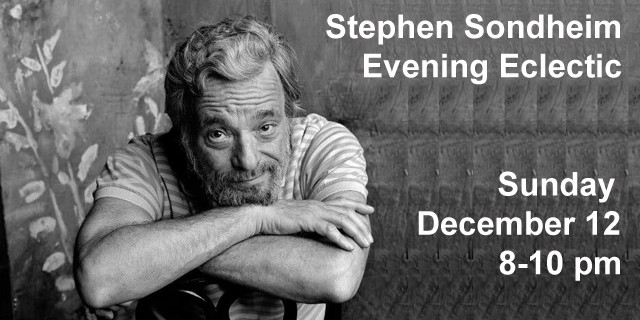 Sun. 8 pm – on “Evening Eclectic” Dave celebrates the music of the late Stephen Sondheim who passed away the day after Thanksgiving. 12/12/2021.