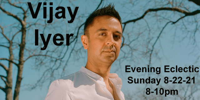 Sun. 8 pm – on “Evening Eclectic” is a conversation with composer and pianist Vijay Iyer, 08/22/2021.