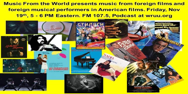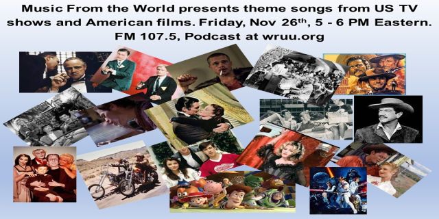 Fri. 5 pm – Tune in to Music From the World, for a special broadcast featuring theme songs from American TV shows and movies. 1126/2021.