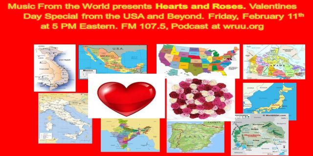 Fri. 5 pm – Cuddle up with your significant other and join Mike for an evening of valentine’s day romance; featuring music from around the world. 02/11/2022.