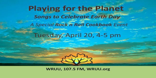 Tue. 4 pm – The Rock n Roll Cookbook celebrates Earth Day all month in April starting with a show for young listeners: 04/06/2021.