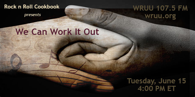 Tue. 4 pm – Music to Bring Disparate Lives Together is on the next Rock n Roll Cookbook. ‘We Can Work It Out’ whatever ‘It’ is. Enough said. 06/15/2021.