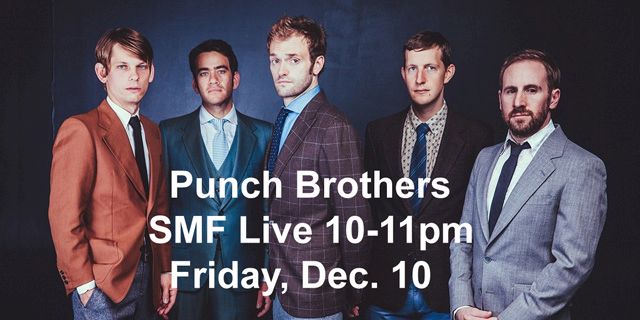 Fri. 10 pm – “SMF Live” from 10-11pm ET features the Punch Brothers who’s performance on Saturday, March 30, 2019 sold out audience at the Trustees Theater. 12/10/2021.