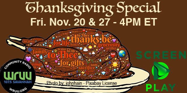 Fri. 4PM – Screen Play’s Thanksgiving Special part II. We have some fun with Charlie Brown and Adam Sandler. 11/27/2020.