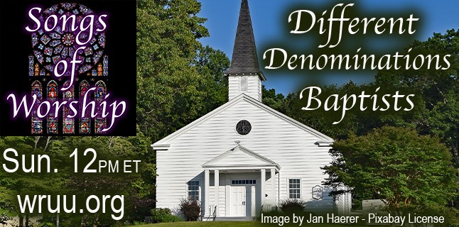 Sun. 12 pm – Songs of Worship begins a multi week series called “Different Denominations.” This week we focus on Baptists. 01/17/2021.