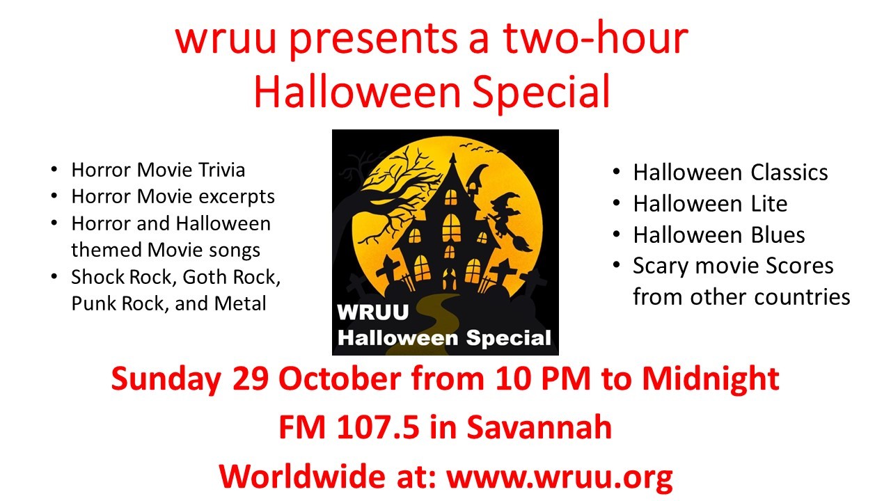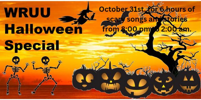 Mon. 8 pm-2 am. Tune in on Halloween night, for 6 hours of scary songs and short stories. 10/31/2022.