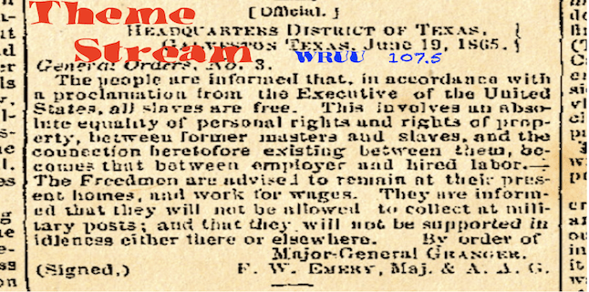 Wed. 10 pm – Wed. 10 pm- Freedom Day is now! Celebrate Juneteenth with songs of freedom on Theme Stream. 06/24/2020.