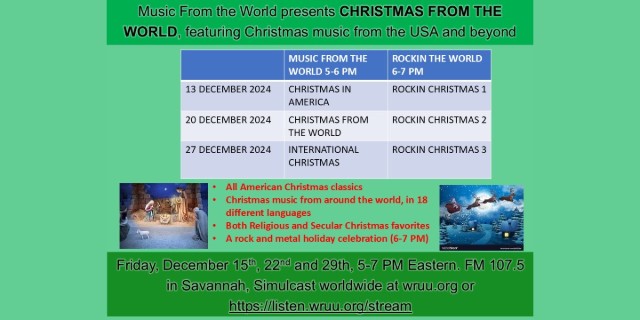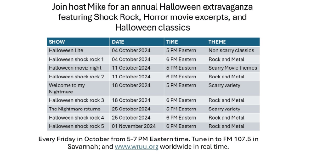 Fridays from 5 PM – 7 PM is a month-long Halloween extravaganza on Music from the World & Rockin the World.