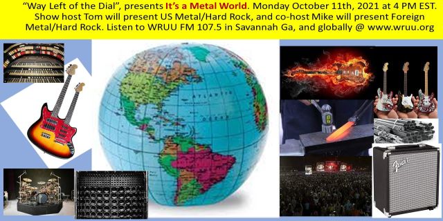 Mon. 4 pm – “Way left of the Dial” will present “The World of Metal” featuring heavy metal from around the world. Two hosts, bring you (2) hours of metal. “It is a Metal World”! 10/11/2021.