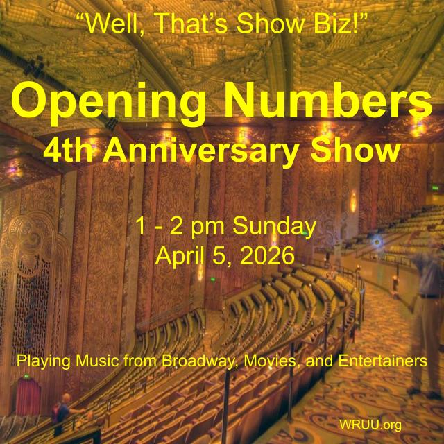 April 5 at 1 p.m. on “Well, That’s Show Biz!”, Jeremy celebrates his 4th Anniversary on the air with Opening Numbers from Broadway Shows.