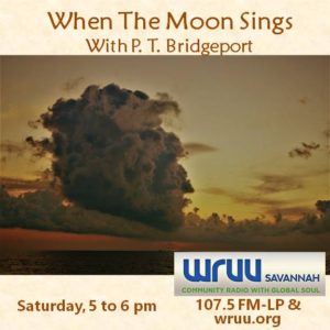 Sat. 5 pm – When The Moon Sings – February 29, 2020 – 5-6 pm. This week, P. T. Bridgeport leaps into March with music about spaghetti westerns, insomniac princesses, an island just off the coast of Puerto Rico, and an African drum. From the soapbox, he maps the wonders of customer support. Music for the quiet of the evening – join us. 02/29/2020.