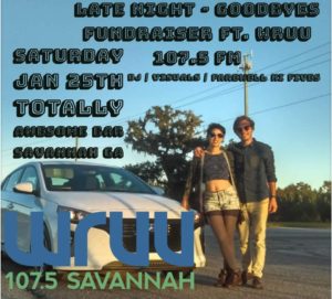 SAVE the DATE: Saturday, Jan. 25th, 9 pm. Late Night – Goodbyes & Fundraiser for WRUU – 107.5 FM Savannah and DJ’s Shane & Camille’s trip. *Dance, Drink and Support a good cause*. 01/25/2020.
