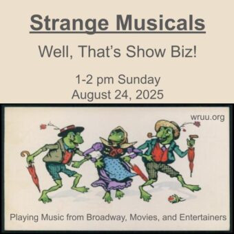 Sunday, Aug. 24, is Strange Music Day. Jeremy will be celebrating by playing songs from Strange Musicals on Well, That’s Show Biz. Most musicals are inherently strange. After all, how many people burst out in song in the middle of a conversation? The four musicals he has selected to showcase are Tony winners and/or extremely popular and very strange. Come join the fun at 1 p.m.