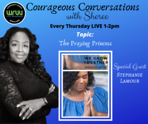Thu. 1 pm – Courageous Conversations with Sheree welcomes Stephanie Lamour, Life Coach, Founder and Author of The Praying Princess. This weeks topic is helping others find their purpose in life through prayer. 01/23/2020.